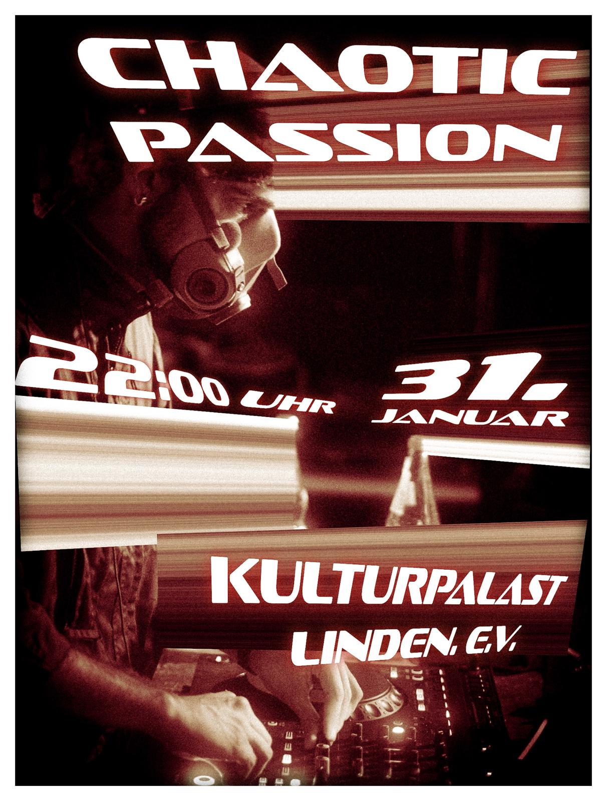 Das Hannoveranische Techno Kollektiv ‚Chaotic Passion‘ veranstaltet einen Electro-Techno Abend im Kulturpalast.